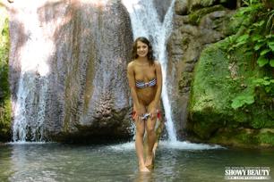 Serena Hill in ATK Petites set Stripping outdoors